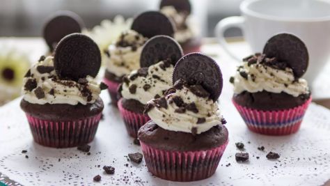 Wilgotne czekoladowe ciasto z kremem Oreo – idealne połączenie chrupiącego ciastka i delikatnej słodyczy. Małe, ale robią wrażenie!